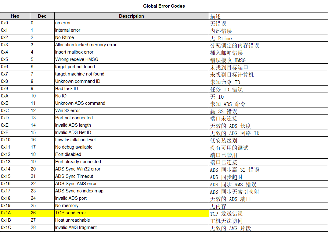 倍福TwinCAT3 Ads错误快查